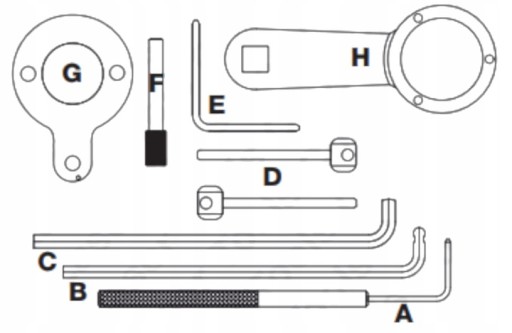 - F) T10264 - Narzędzie do blokowania koła pasowego napinacza paska