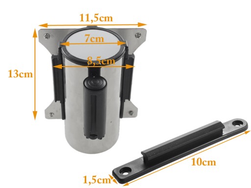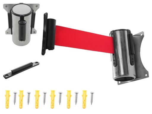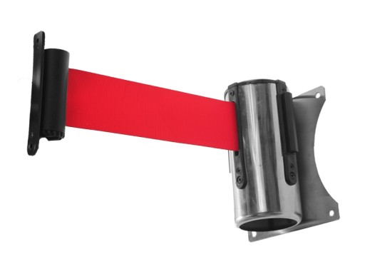Stalowe kaseta z wyciąganą taśmą samozwijającą w kolorze czerwonym o długości 3 m pozwala w łatwy sposób zagrodzić oraz wygrodzić odpowiednie ciągi komunikacyjne tak by ruch odbywał się w sposób uporządkowany lub w widoczny sposób wygrodzić miejsca do których dostęp jest ograniczony. Dzięki regulowanej długości taśmy możliwe jest proste dostosowanie długości do szerokości przejścia czy pomieszczenia lub obiektu, które chcemy wygrodzić. Jest to doskonałe rozwiązanie do hoteli, restauracji, urzędów czy podczas wydarzeń kulturalnych i targów.