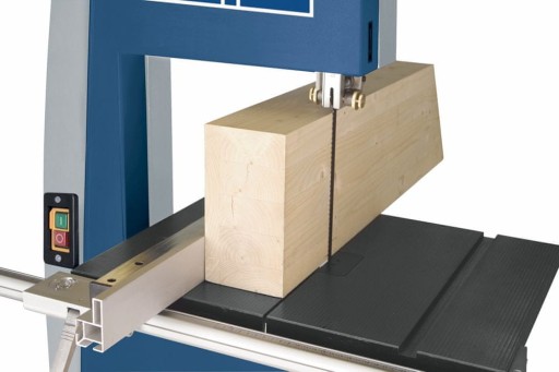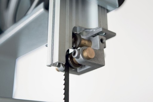 - Precyzyjny ogranicznik wzdłużny z lupą, do zastosowania z lewej i prawej strony piły taśmowej