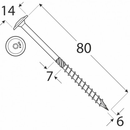 ВИНТЫ ДЛЯ СТОЛЯРНЫХ ПЛАСТИН 6x80 TORX