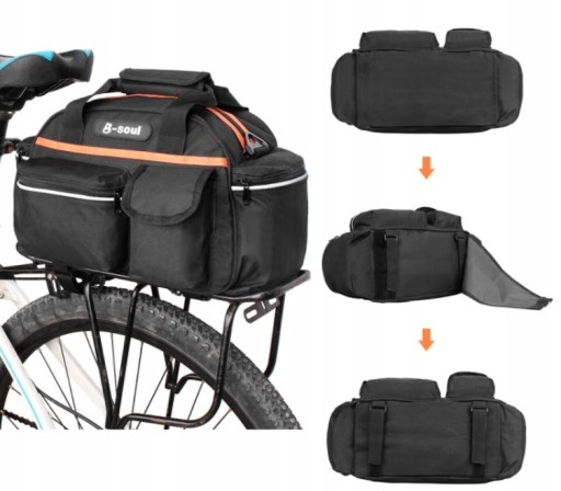 Bagażnik regulowany na tył na sztyce oraz pojemna torba na magażnik stanowią idalne zestaw dla każdego rowerzysty.