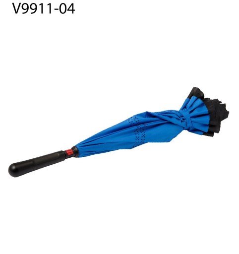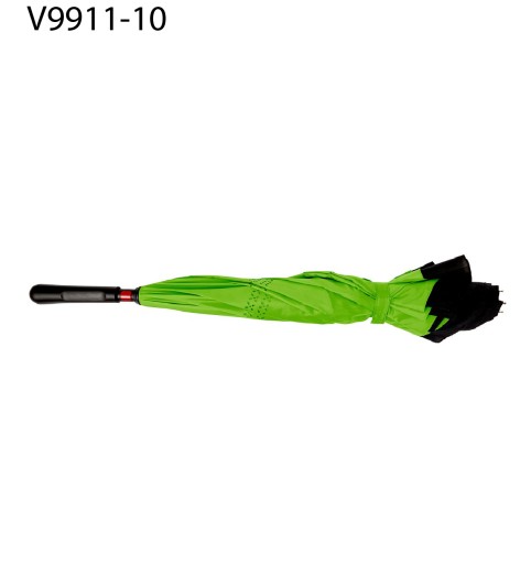 Odwracalny parasol manualny, 8 paneli, czarny trzon i rama z włókna szklanego, plastikowa rączka, zapięcie na rzep.