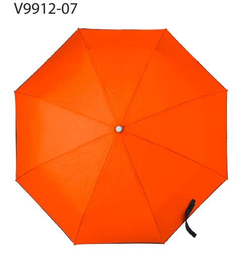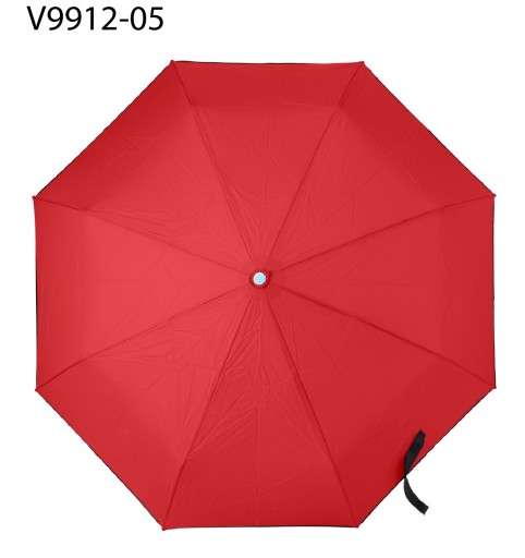 Parasol składany, automatyczny, 8 paneli, metalowy trzon, rama z włókna szklanego, plastikowa rączka, zapięcie na rzep, dołączony pokrowiec.