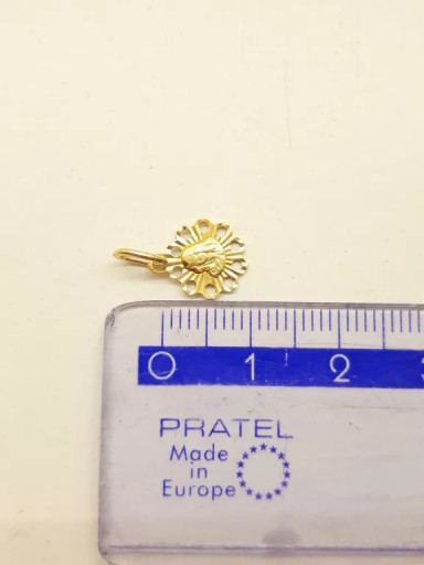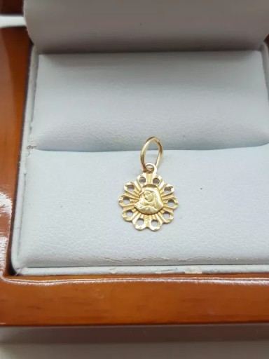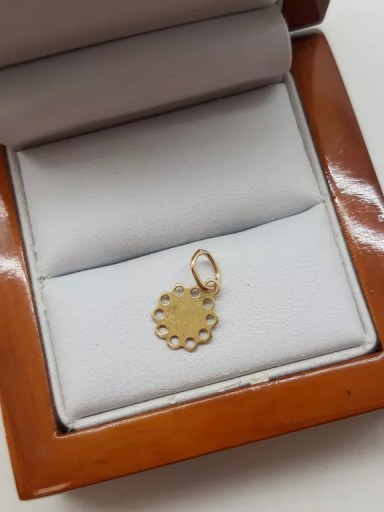 Wyrób jest używany. Pięknie się prezentuje. Stan wizualny oceniamy na bardzo dobry. Maleńki medalik z matką boską.
