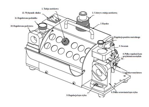 - Pozwala na ostrzenie krawędzi tnącej wierteł, kąta przyłożenia narzędzia oraz kąta styku. Ponadto możliwe jest kontrolowanie punktu centralnego w dowolnym miejscu zamiast środka wiertła, co pozwala na łatwe odprowadzanie wiórów.