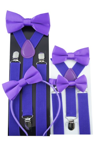 FIOLETOWE Szelki do spodni + muszka do wyboru