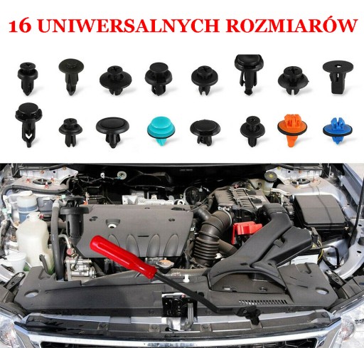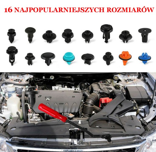 16 najpopularniejszych rozmiarów: ten zestaw klipsów do karoserii samochodu i zestaw narzędzi do zdejmowania tapicerki.