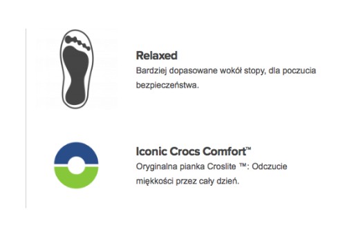 Zastosowano technologię, która gwarantuje komfort noszenia oraz w pełni dostosują się do Twojego aktywnego stylu życia. W pełni dopasowujący się opatentowany materiał Croslite™ zapewnią Tobie lekkość i wysoki komfort.