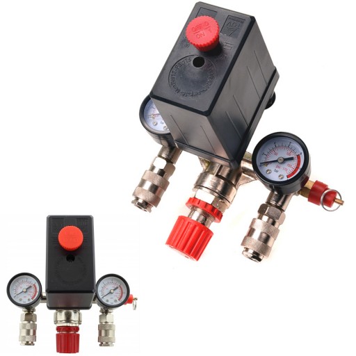 Wysokiej jakości wyłącznik ciśnieniowy (presostat) z kolektorem, dwoma szybkozłączkami i manometrami przeznaczony do kompresorów ciśnieniowych na 230V. Presostat wykorzystywany jest głównie w kompresorach o pojemności 24l i 50l.