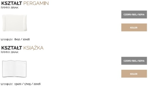 Jest to najbardziej klasyczny i popularny kształt. Dostępne w wielu rozmiarach, w wersji czarno-białej, sepii lub kolorowej. Zdjęcie może być zdobione obwódką złotą lub platynową (warianty dostępne na innych aukcjach).
