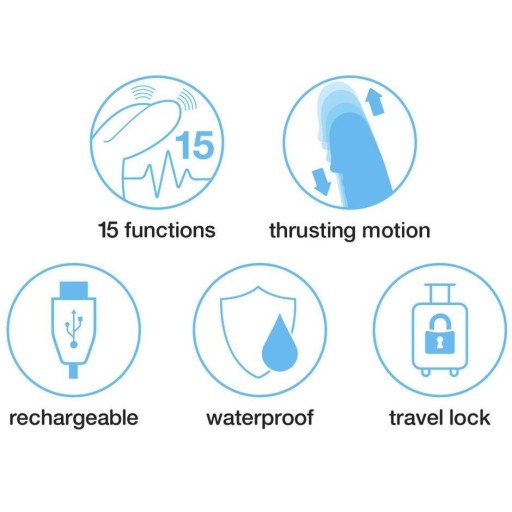 15 trybów wibracji (9 prędkości i wzorów w uszach, 3 prędkości w części wysuwającej się)