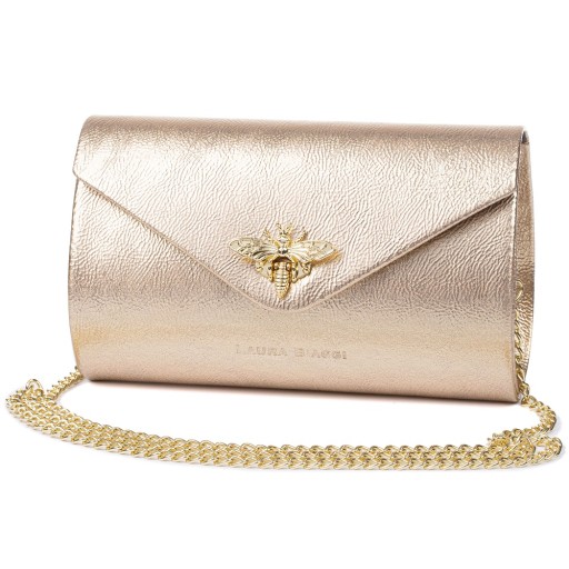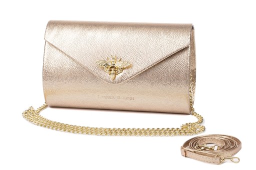 Koperta zapinana jest ozdobną pszczółką, dzięki której zyskuje na swoim eleganckim wyglądzie. Można ją nosić zarówno w ręce, jak i na ramieniu. Do torebki oprócz zwykłego paska dołączono także złoty łańcuszek dodający elegancji. Gwarantujemy trwałość i wysoką jakość produktu. Gorąco polecam.