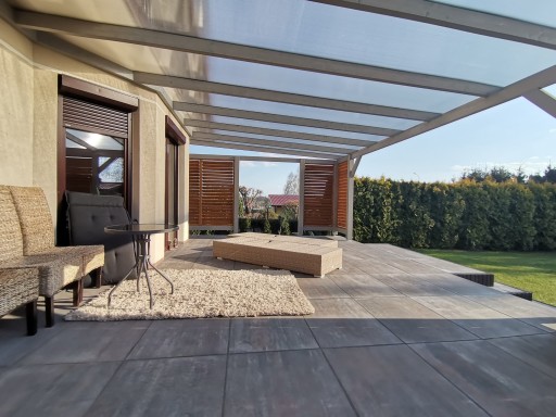 Zadaszenia tarasów można połączyć z dostępnymi u nas w sprzedaży regulowanymi żaluzjami w celu jeszcze bardziej funkcjonalnego zagospodarowania przestrzeni.