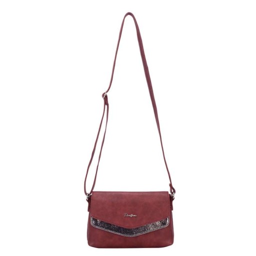 Polecamy torebkę listonoszkę renomowanej firmy David Jones ze srebrnym logo z przodu.