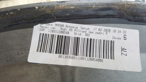 Listwa błotnika prawy tył-- AUDI A6 C8 ALLROAD nr. 4K9853818, oryginał z demontażu, stan-foto, cena za 1 szt., posiada ślady uży tkowania.