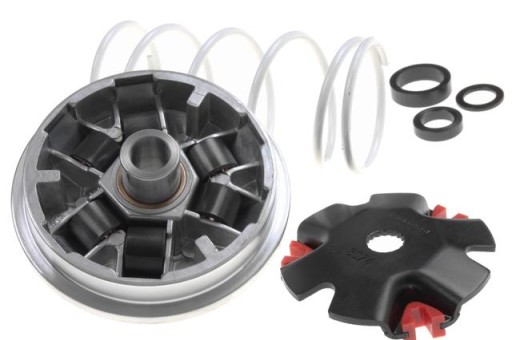 Wariator Malossi Multivar. Bardzo dobry produkt znanej wszystkim firmy Malossi. Dostarczany razem z sprężyną dociskową, kompletem rolek 16x13 o wadze 7.0g, pokrywą wariatora, ślizgami wariatora oraz zestawem podkładek.