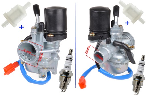 NOWY ODBLOKOWANY GAŹNIK DO SKUTERÓW 2T + ŚWIECA + FILTR PALIWA