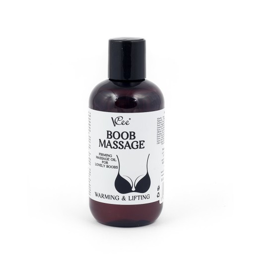 Rewolucyjny olejek do masażu biustu - zasobny w specjalnie dobrane składniki aktywne. Zapewni efekt liftingu biustu bez konieczności wychodzenia z domu. Połączenie olejku VCee BOOB MASSAGE z kremem VCee BOOB LIFT, najpierw poprawi krążenie krwi, aby w następnym etapie umożliwić składnikom głębszą penetrację, zapewniając wszystkie niezbędne składniki odżywcze dla uzyskania efektu pełniejszego i ujędrnionego biustu.