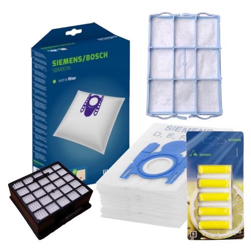 Zestaw worków oraz filtr HEPA H13 wraz z filtrem ochronnym silnika + zapach przeznaczone do odkurzaczy domowych marki BOSCH.