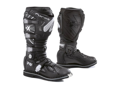 Off-road'owe buty motocyklowe wykonane ze skóry i materiału syntetycznego. Wyposażone w I.S.S. wzmocnioną podeszwę środkową oraz F.C.S. System wspierania kostki, gwarantujące bezpieczeństwo i komfort użytkowania.