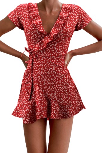Sukienka wykończona falbankami które nadają lekkości całej stylizacji.