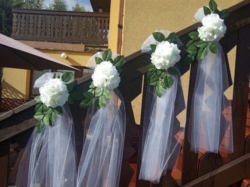Stroiki doskonale nadają się do dekoracji kościoła, sali, domu, płotu czy klamek samochodu. Mają tasiemki, za pomocą których można je przywiązać.