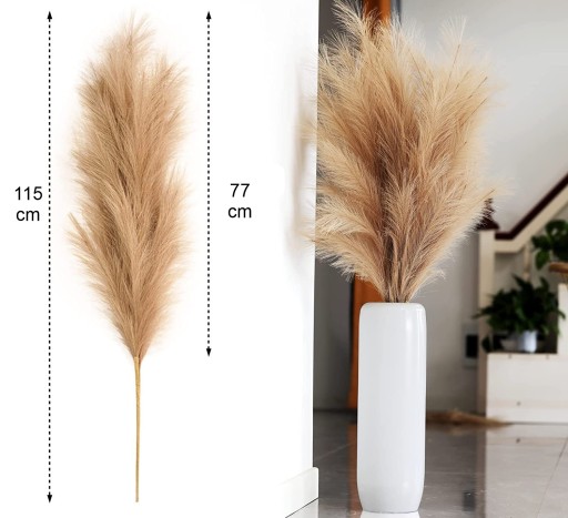 - ✅ ULUBIONA DEKORACJA PROJEKTANTÓW - Pampasy stały się bardzo chętnie wybieranym przedmiotem przez projektantów, gdyż dzięki małej inwestycji możemy w stylowy sposób udekorować wnętrze na lata. Co równie ważne, sztuczne kwiaty są praktycznie wieczne i nie trzeba wymieniać ich po kilku miesiącach.