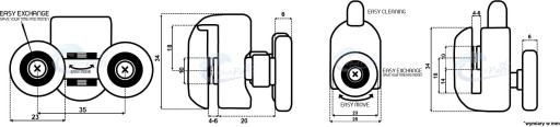 - Rolki z łożyskami kółkowymi Easy Move wózki z kółkami dopasowują się do kształtu prowadnicy;