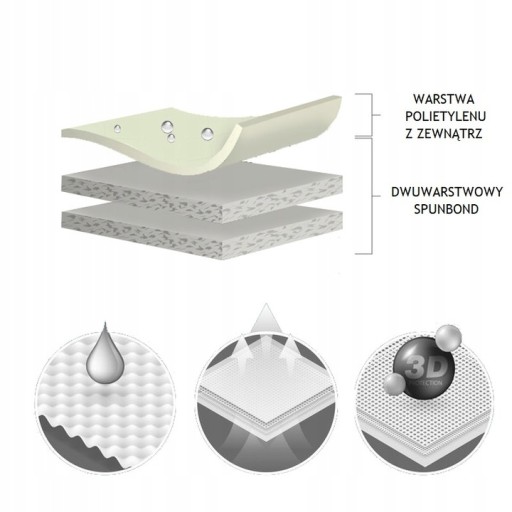 Plandeka wykonana z tkaniny typu spunbond powlekany polietylenem z mikroperforacją nowej generacji.