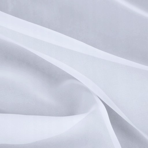 Roletka wykonana z tkaniny w kolorze śnieżnobiałym. U góry wszyta taśma 5 cm. Można przypinać żabkami lub wsuwać na tunel.