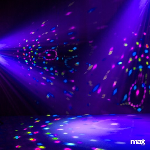 Oba Jellymoons zapewniają przyjemny efekt ruchu. Wielokolorowe wiązki poruszają się po pokoju i tworzą fantastyczny efekt. Ten poruszający efekt, wraz z kolorowym oświetleniem z obu punktów PAR, tworzy kompletny pokaz świetlny.