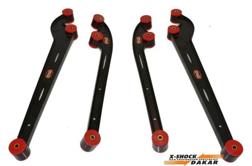 Wzmocnione wahacze eliminują słabe punkty fabrycznych elementów podatne na przeciążenia i zniszczenie. Zaprojektowane są tak aby przywrócić po lifcie fabryczne kąty mostów i zapewnić bezpieczne oraz stabilne prowadzenie. Wzmocnione drążki panharda pozwalają ustawić mosty w oryginalnym położeniu zapewniając stabilność prowadzenia.