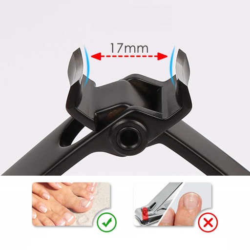 Szerokie otwarcie szczęk: Obcinacz do paznokci jest jednoczęściowy, nie ma potrzeby obracania ramion przycinacza, otwarcie szczęk o szerokości 15 mm, z dźwignią 8,8 cm oszczędza wysiłek i czas. Obcinacz do paznokci i obcinacz do paznokci zmniejsza ryzyko rozprzestrzeniania się grzyba paznokciowego między stopami, a dłońmi.