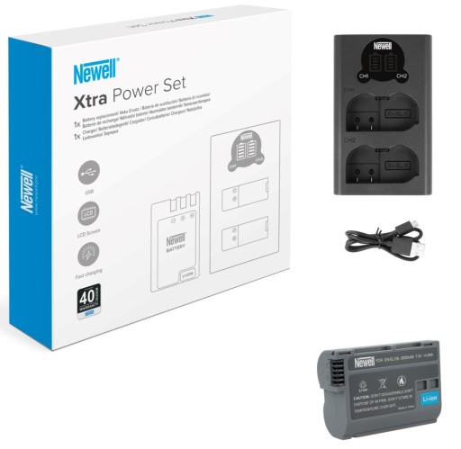 Zestaw, w którego skład wchodzi ładowarka dwukanałowa Newell DL-USB-C oraz akumulator EN-EL15b to wszystko, czego potrzebujesz, aby przygotować się na długie godziny pracy z aparatem. Wszędzie tam, gdzie dostęp do sieci elektrycznej jest ograniczony, możesz skorzystać z portu USB, który pozwoli na ładowanie ogniw za pomocą laptopa, power banku lub ładowarki do smartfonów. W zestawie znajdziesz zamiennik akumulatora EN-EL15b, w którym zastosowano najlepszej jakości ogniwa oraz inteligentny system regulujący proces ładowania. Nie musisz tracić czasu na szukanie akumulatorów kompatybilnych z ładowarkami. To, czego potrzebujesz, znajdziesz w jednym pudełku. A wszystko w wyjątkowej cenie i z 40-miesięczną gwarancją producenta!