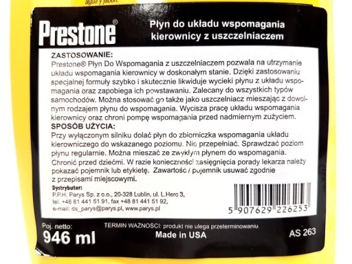 Płyn do układu wspomagania kierownicy z uszczelniaczem Prestone 964 ml