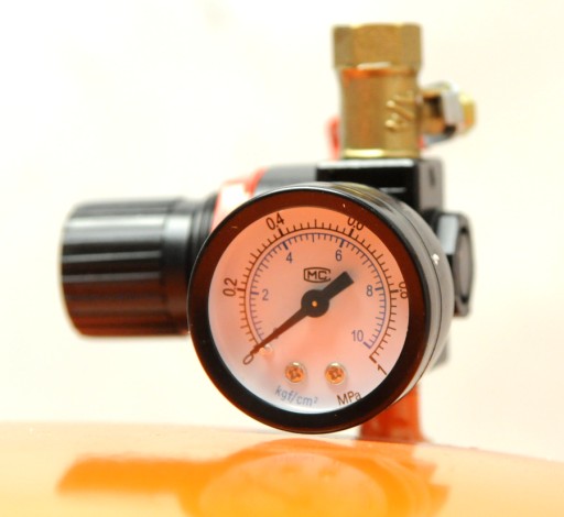 W celu płynnej kontroli nad urządzeniem producent przewidział manometr, który pokazuje aktualną wartość ciśnienia w zbiorniku.
