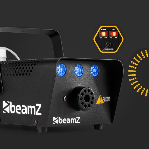 BeamZ S700LED można łatwo kontrolować za pomocą dołączonego pilota. Po rozgrzaniu maszyny wystarczy wcisnąć przycisk, aby w pomieszczeniu pojawił się dym i przyjemny efekt lodu.