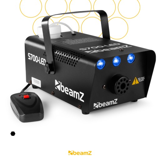 BeamZ S700LED można łatwo kontrolować za pomocą dołączonego pilota. Po rozgrzaniu maszyny wystarczy wcisnąć przycisk, aby w pomieszczeniu pojawił się dym i przyjemny efekt lodu.