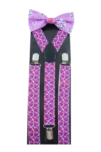 Szelki i muszka w serca walentynkowe unisex fiolet