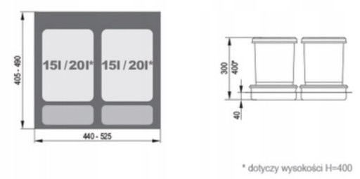 Do szuflad o głębokości L-450 mm i L-500 mm