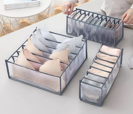Zestaw zawiera 3 rodzaje schowków, które są idealne do każdego rodzaju bielizny.
