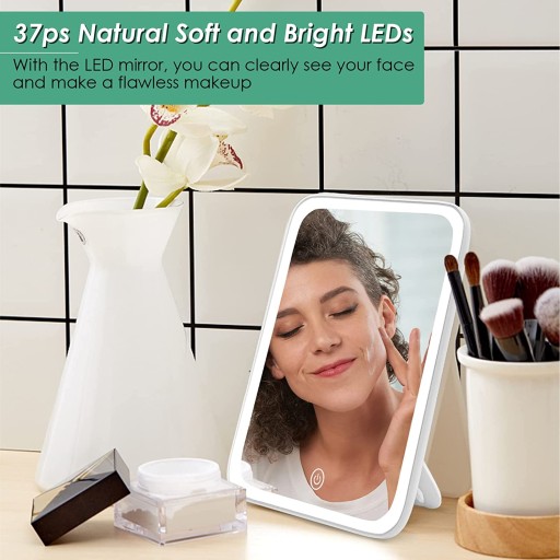 Lustro stołowe Auxmir z 37 nieoślepiającymi jasnymi diodami LED w ramie zapewnia równomierne i nieoślepiające oświetlenie pełnoklatkowe nawet w warunkach słabego oświetlenia; widoczne nawet najdrobniejsze włoski i pory, idealne do przystrzyżonej brody, dokładnego golenia, makijażu, pielęgnacji twarzy i noszenia soczewek kontaktowych.