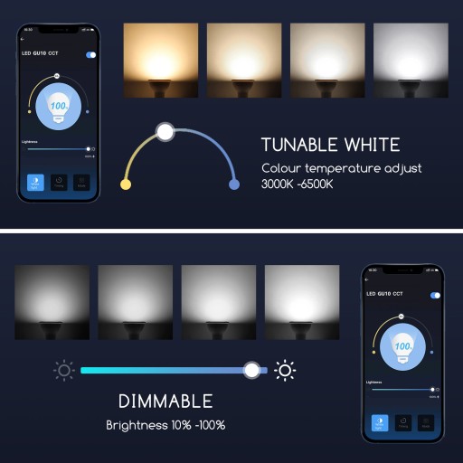 Żarówka LED SMART GU10 5W WiFi CCT Zmiana barwy światła