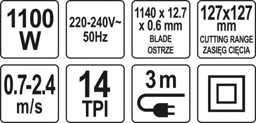 - rozmiar brzeszczotu (w zestawie): 14 TPI, 1140 x 12,7 x 0,6 mm
