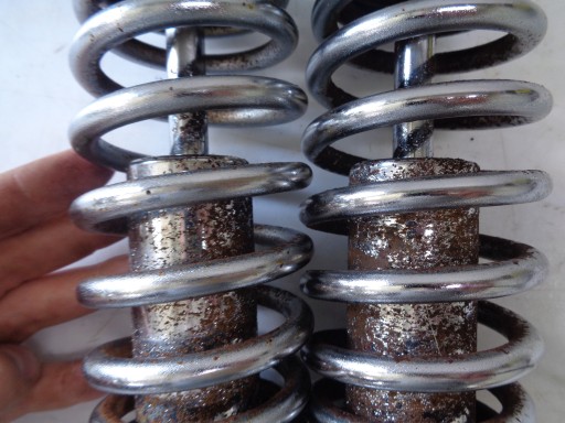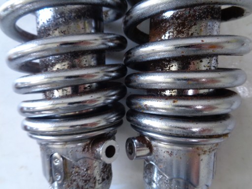Amortyzatory sprawne, proste, wżery na chromie i tłoczkach, sprzedaję komplet, dokładnie to, co widać na zdjęciach.