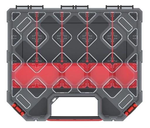 Organizer można spersonalizować do indywidualnych zapotrzebowań dzięki połączeniu konfigurowalnych przegród oraz wyjmowanych kubełków.