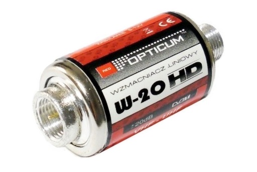 Wzmacniacz W-20 HD OPTICUM przeznaczony jest dla domowych instalacji antenowych do wzmocnienia naziemnych sygnałów TV analogowych oraz cyfrowych w paśmie 5-862 MHz.