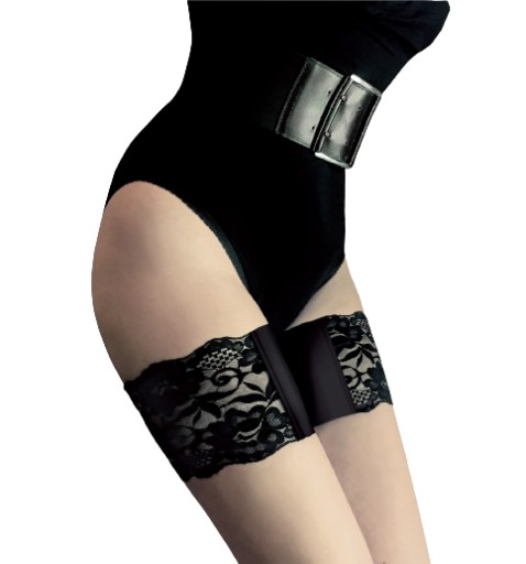 Samonośna koronkowa ozdobna satynowa opaska na uda z silikonem.