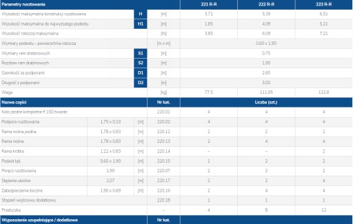 RUSZTOWANIE ALUMINIOWE DRABEX RA-600R-R WYS.ROB.6,09M