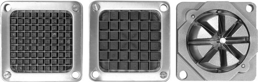 - w zestawie 4 wymienne ostrza do krojenia: w słupki (frytki) 6 x 6 mm, 9 x 9 mm oraz 13 x 13 mm; na 8 części